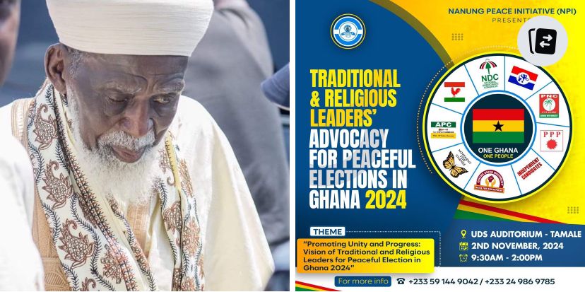 The Nanung Peace Initiative (NPI) is deeply privileged to announce that His Eminence Sheikh Osman Nuhu Sharubutu, the esteemed National Chief Imam of Ghana, will deliver a highly anticipated keynote address at the “Traditional and Religious Leaders’ Advocacy for Peaceful Elections in Ghana 2024” event. This monumental gathering is scheduled for this November 2, 2024, at the UDS Multi-Purpose Auditorium in Tamale, from 9:30 am to 3:00 pm.